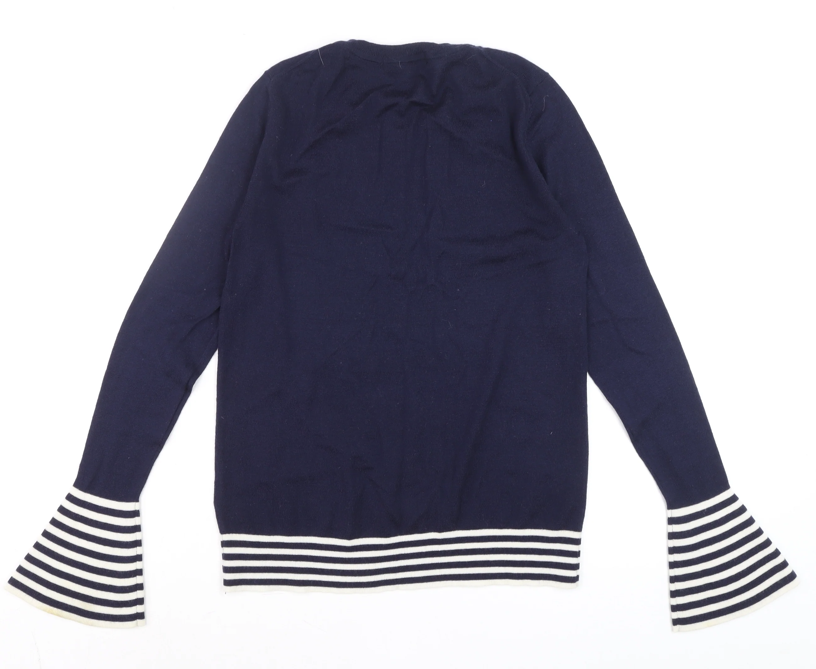 Boden Women Blue Wool Knit Long Sleeve Striped Flared Cuff Jumper UK 10