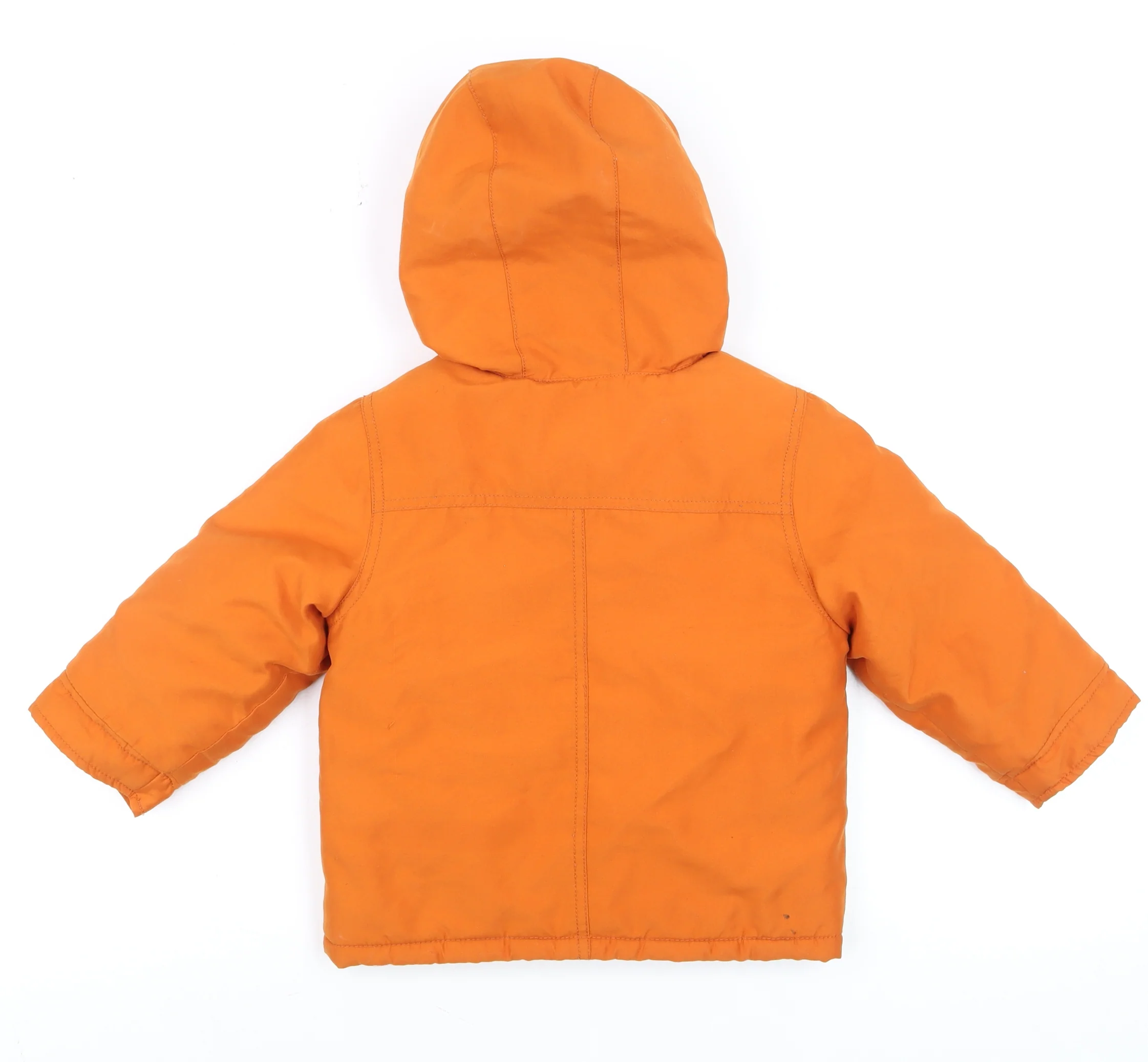 Keep your little one warm, comfortable, and stylish this winter with this vibrant orange Gymboree hooded puffer jacket for boys. Designed for ages 2 to 3 years, this cosy coat is made from 100% polyester, including the shell, lining, and filler, ensuring durability, insulation, and easy care. The soft fleece interior adds an extra layer of warmth, while the smooth polyester outer shell provides a sleek and practical finish that’s resistant to everyday playwear. Perfect for colder months, school runs, or outdoor adventures, this short-length winter jacket provides both warmth and flexibility for active little ones. This jacket features a full zip closure with flap protection to keep the wind out, along with two front pockets ideal for small treasures or keeping hands snug. The attached hood provides extra protection against the cold and wind, while the lightweight yet insulated construction ensures comfort without bulk. The cheerful orange colour brings brightness to dull winter days, making it a standout piece in any boy’s wardrobe. Gymboree’s attention to quality means this jacket is built to last, offering a combination of functionality and fun style. Machine washable and quick-drying, it’s designed with parents in mind for easy maintenance. The regular fit ensures comfort and freedom of movement whether playing at the park or heading to school. Condition is excellent, showing minimal signs of wear and no visible damage or marks, though original sales tags are not attached. This jacket is ideal for parents looking for great value outerwear that combines practicality, comfort, and bright design. A winter essential that balances warmth, durability, and style – perfect for little explorers who love to play outdoors, no matter the weather.