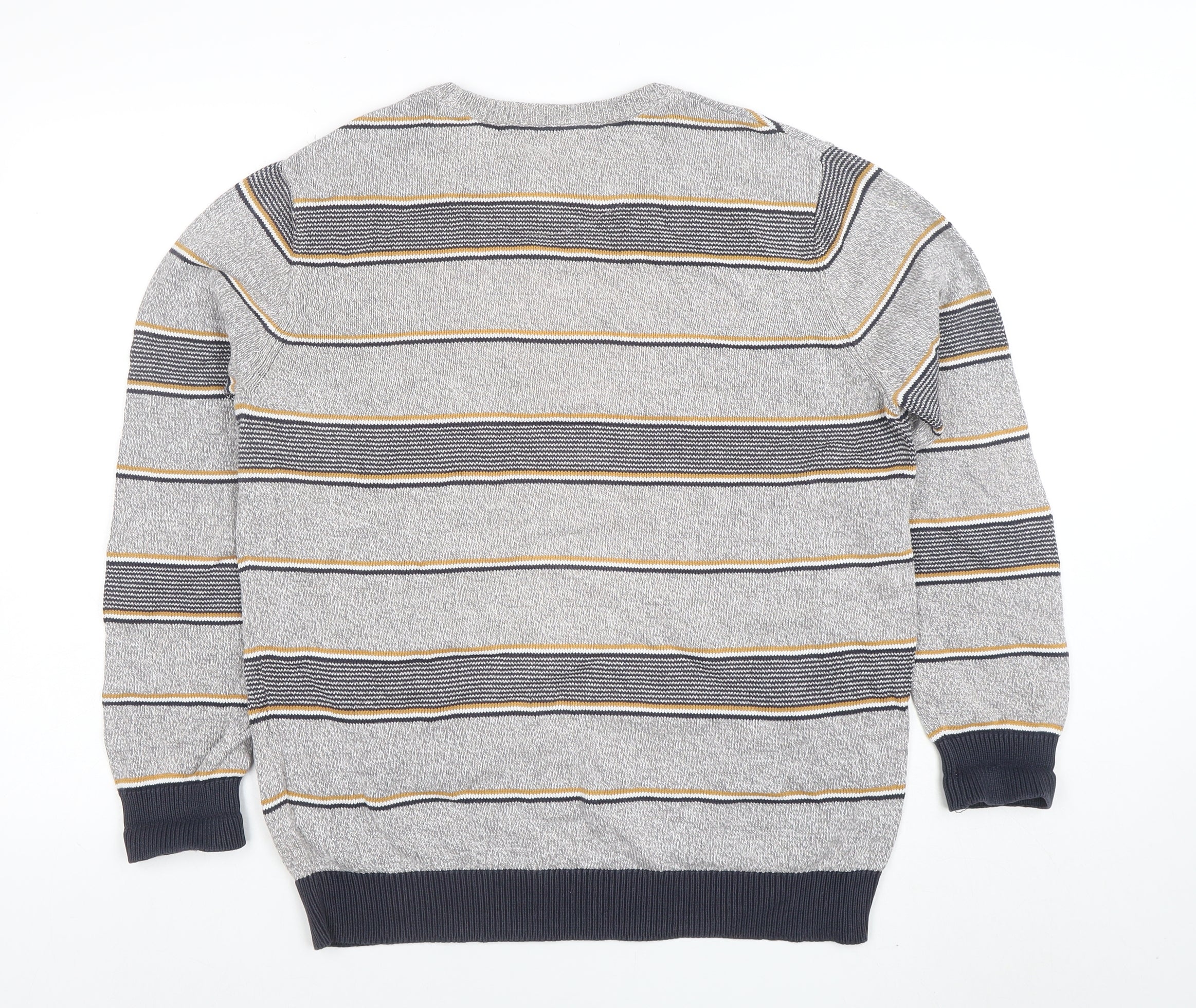 Maine New England Men's Grey Striped Cotton Crew Neck Jumper M—