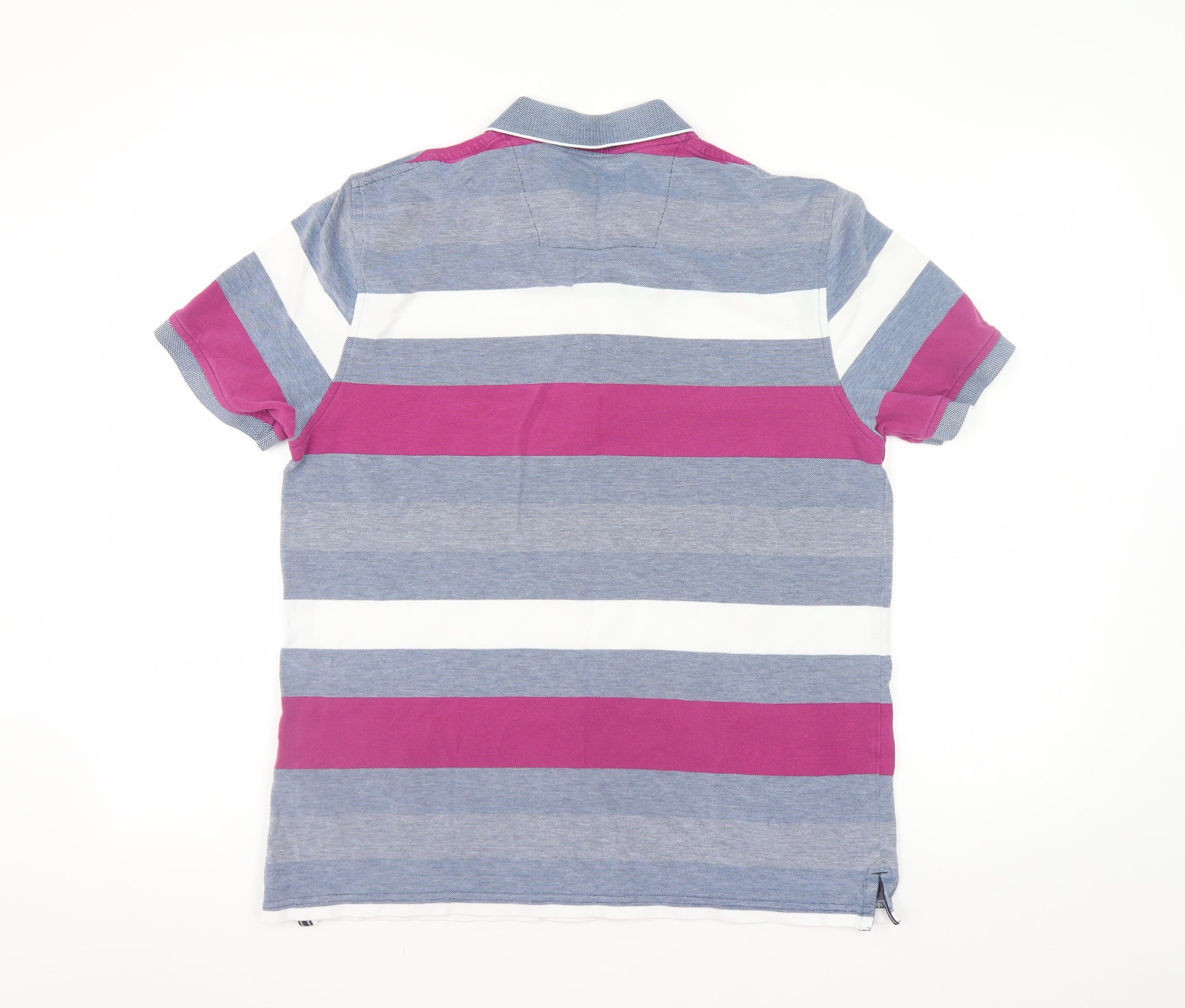 Maine New England Men's Multicoloured Striped Cotton Polo Shirt Size S—