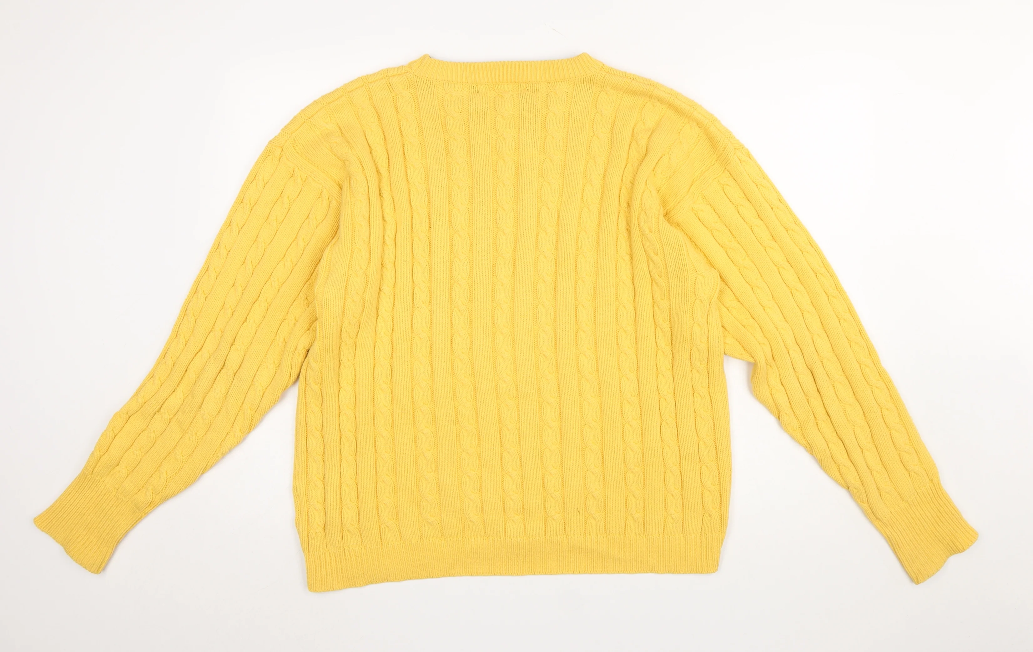 Maine New England Men's Yellow Cable-Knit Cotton Jumper Size L—