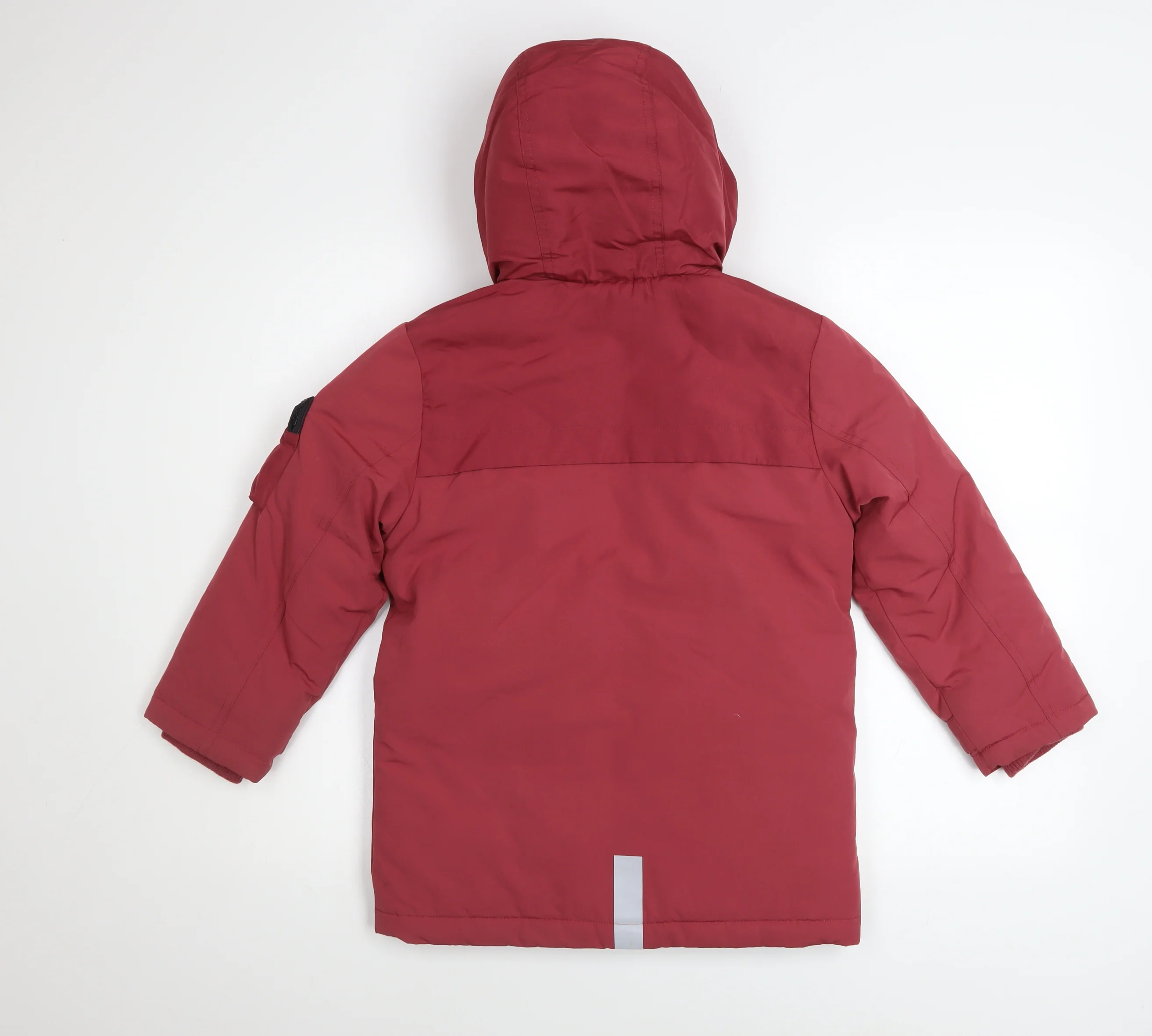Marks and Spencer Boys Red Hooded Parka Coat 6-7 Years Padded Winter Jacket