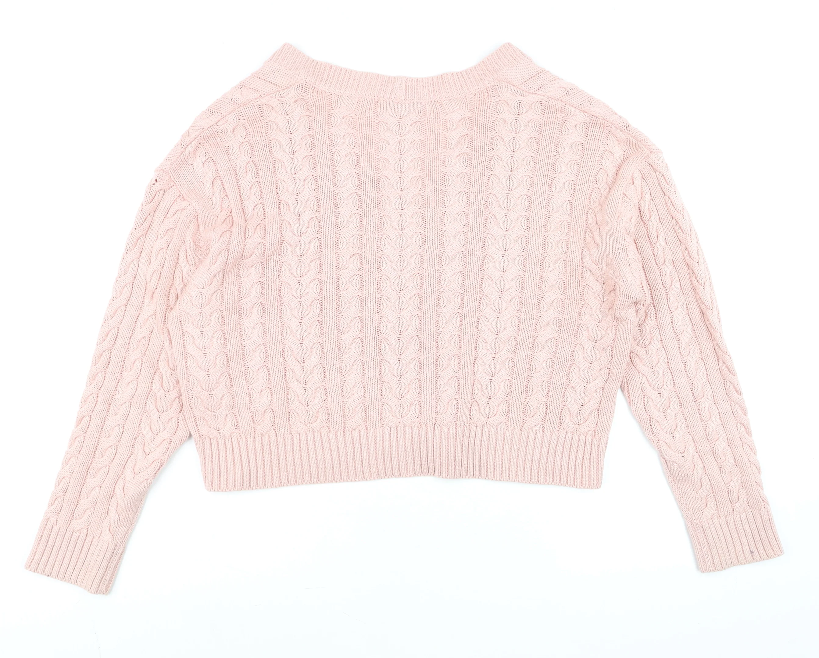 New Look Women’s Pink Cable-Knit V-Neck Button Cardigan Size M