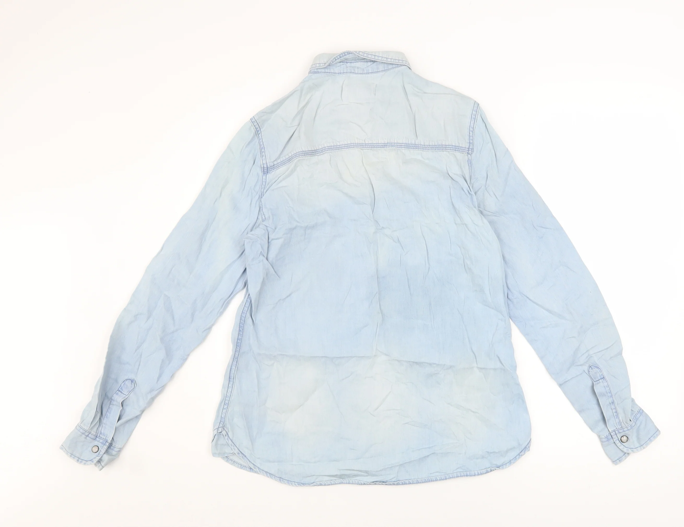 New Look Women's Blue Denim Long Sleeve Button-Up Shirt Size 10