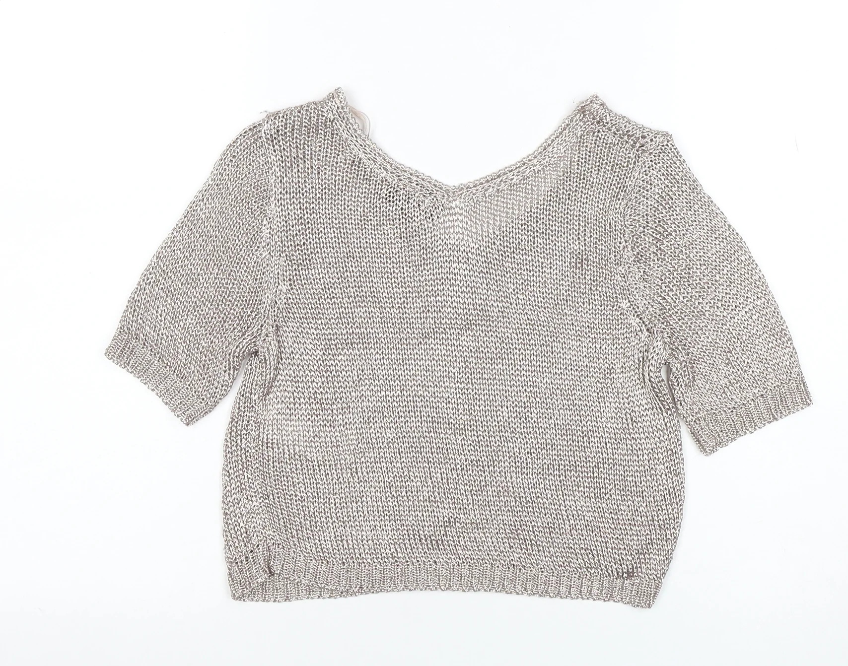 Topshop Petite Women’s Silver Knit V-Neck Cropped Blouse Size 8