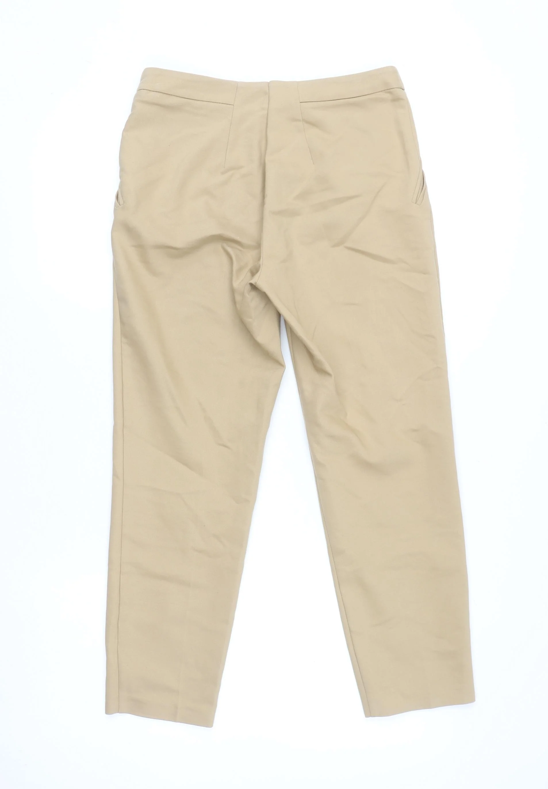 Topshop Women Beige Chino Tapered Trousers Size 10 Stretch Comfort